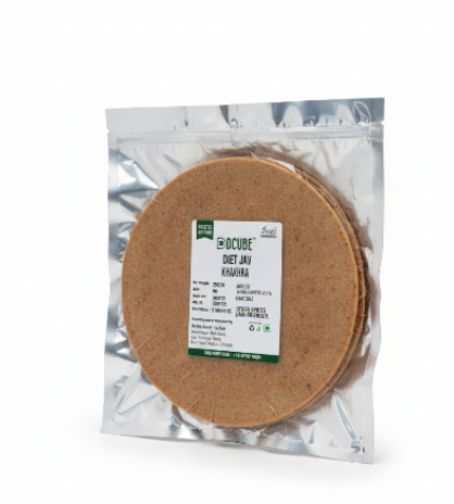 DCUBE Diet Jav Khakhara is a healthy, fiber-rich snack made from whole jav (barley) and whole wheat flour, blended with sesame seeds, mild spices like chili powder and turmeric, and edible oil. This powerful combination offers a crunchy and flavorful traditional snack that supports digestion and helps keep you full, making it an excellent choice for mindful and guilt-free snacking.