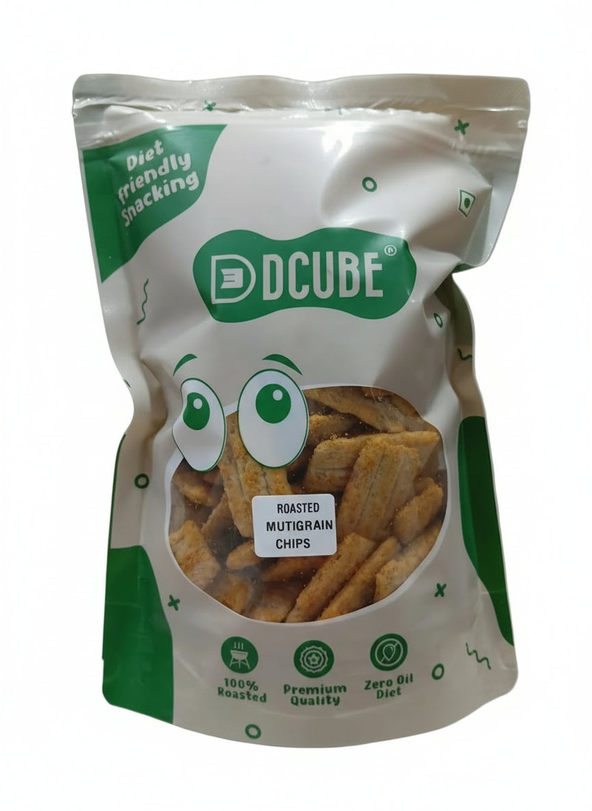 DCUBE Roasted Multigrain Chips are a smart snacking choice designed for health-conscious consumers seeking both flavor and nutrition in every bite. These chips are 100% roasted, never fried, which keeps them low in oil and preserves the crunch and natural taste of the grains.