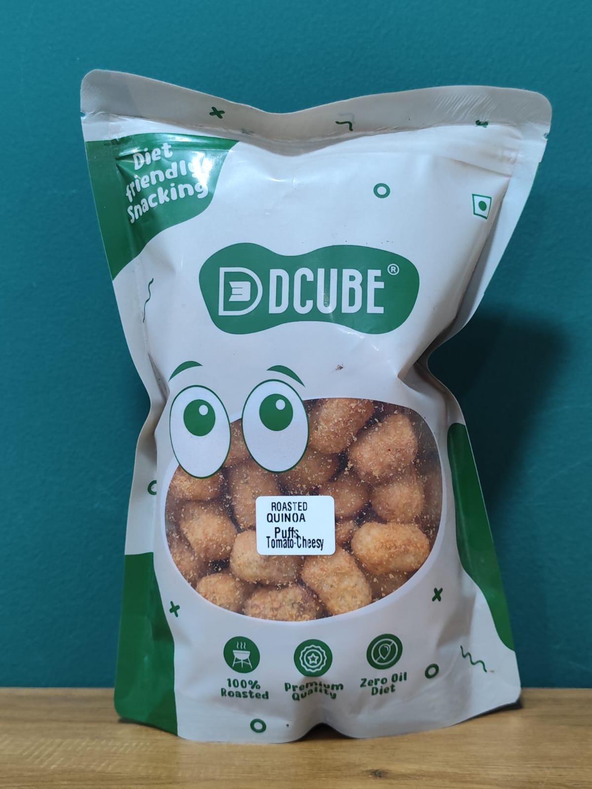 Enjoy DCUBE Roasted Quinoa Puff Tomato Cheesy for a delicious, nutritious snacking option that fuels your day with healthful ingredients and savory flavor.